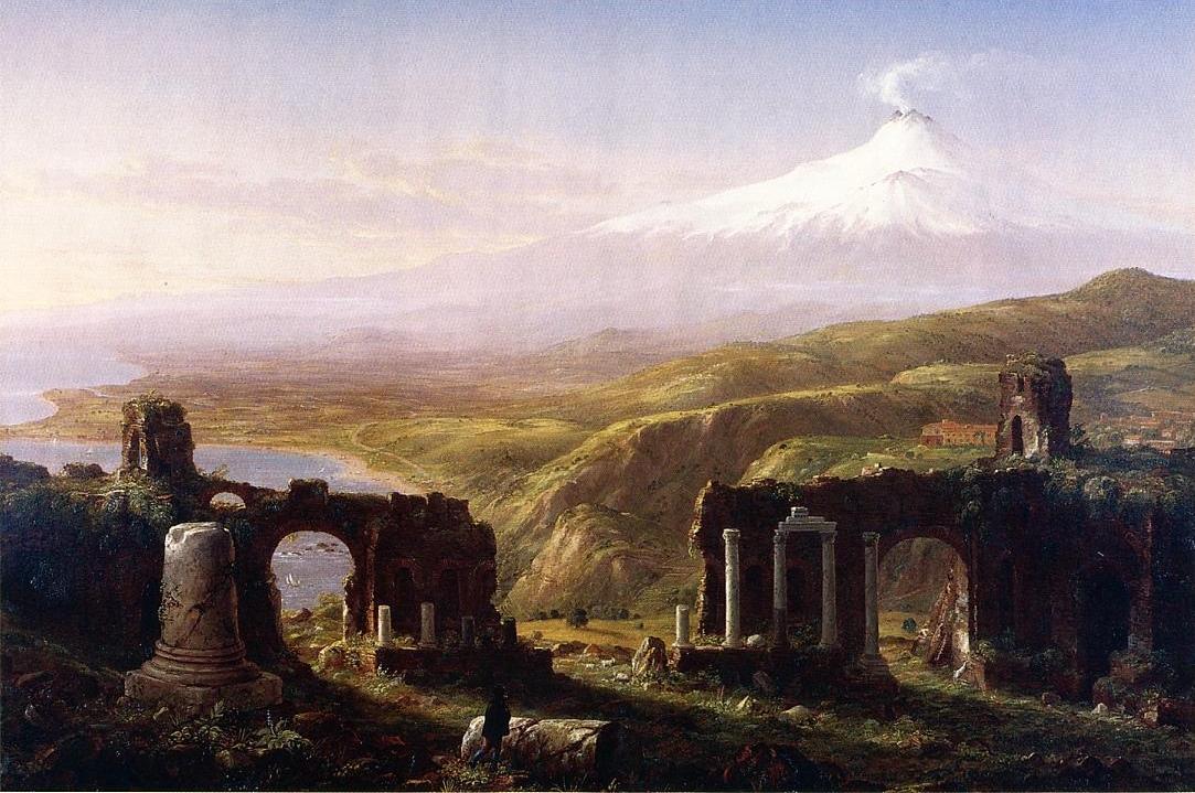 Your oil painting reproduction of "Mount Aetna from Taormina, Sicily" by Thomas Cole will be handmade to replicate all the brushstroke details, colors, and shading of the original work of art. Please be assured that you will receive a magnificent oil painting.